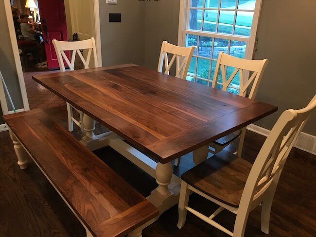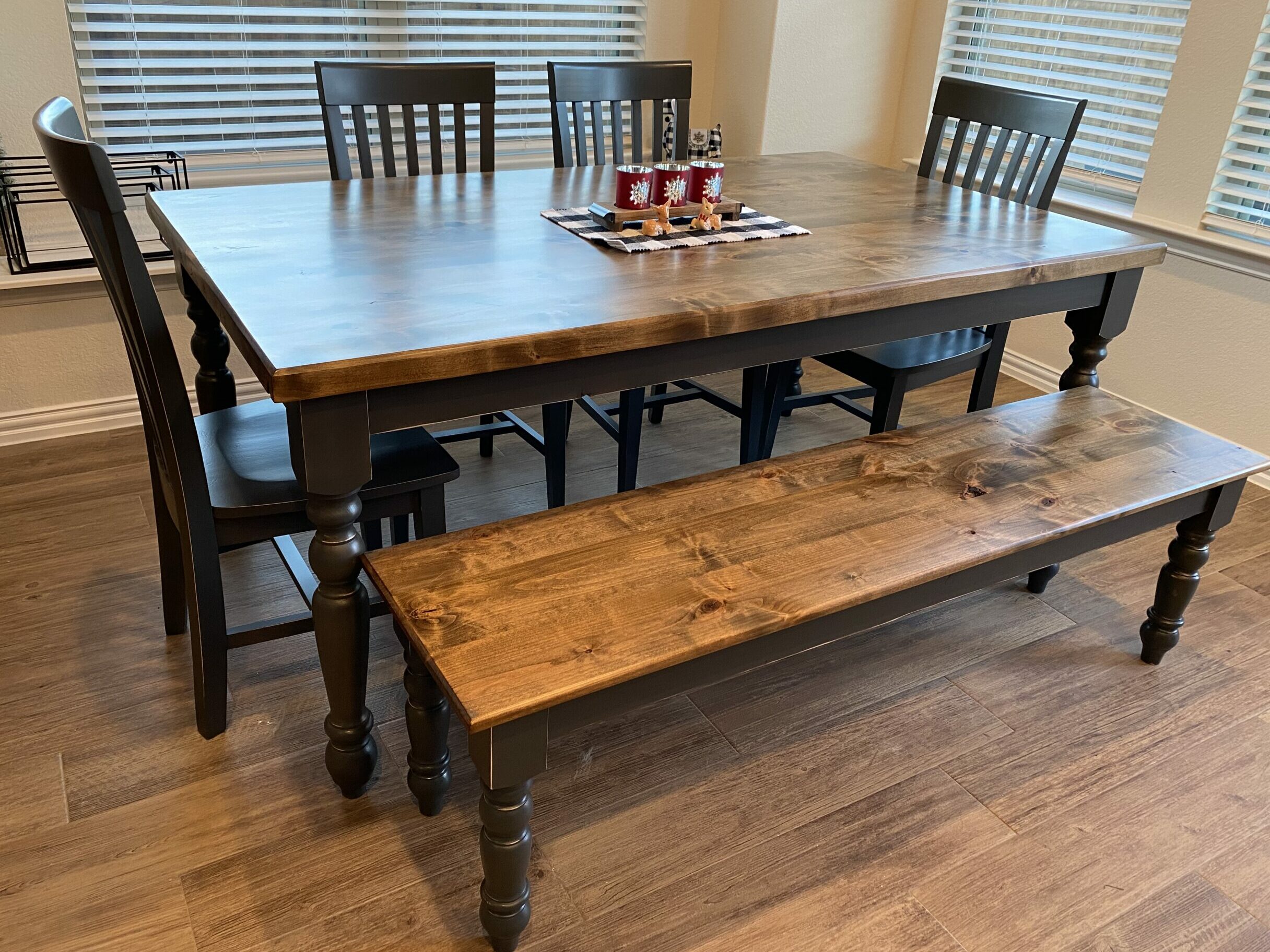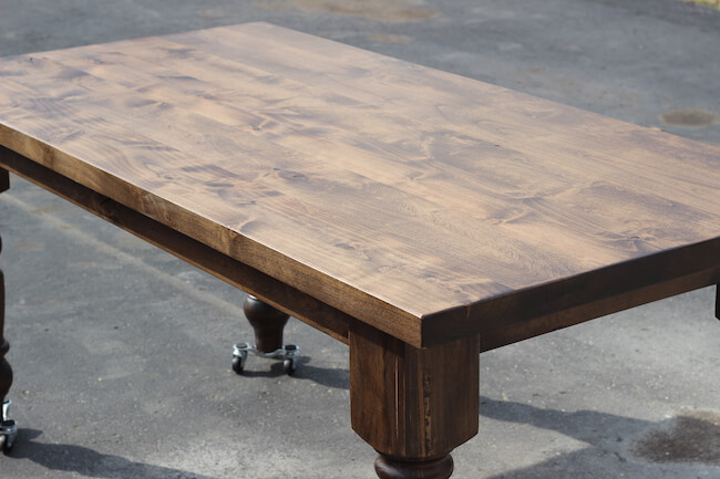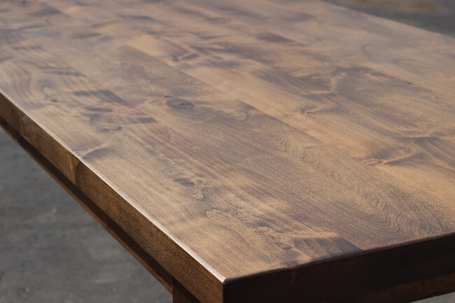 - Dark Walnut Stain on our Summertree Dining Table in Rustic Alder